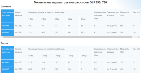 Безмасляные поршневые компрессоры CRP-550AF и OLF 750 представляют собой удачную конструкцию отвечающую всем требования к данному типу компрессорного оборудования.