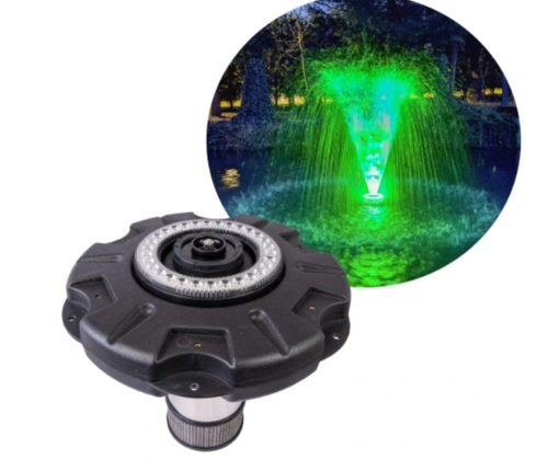 Светодиодное кольцо RGB мощностью 9 Вт создает красивую иллюминацию после наступления темноты, подчеркивая движение воды цветным светом. Благодаря астрономическим часам подсветка автоматически включается в сумерках и выключается в указанное время. Фонтаном можно управлять и вручную - с помощью пульта дистанционного управления можно управлять насосом и подсветкой.
