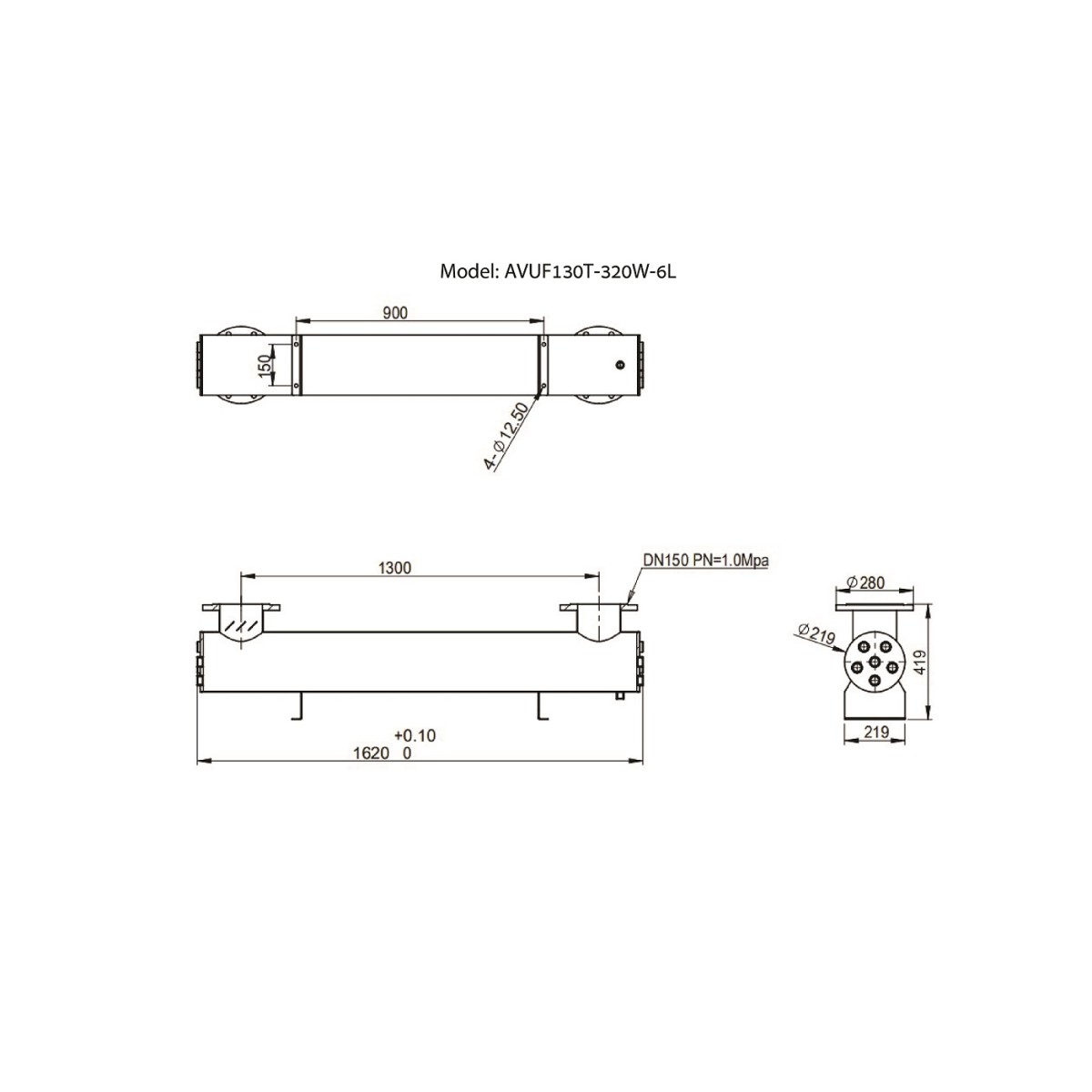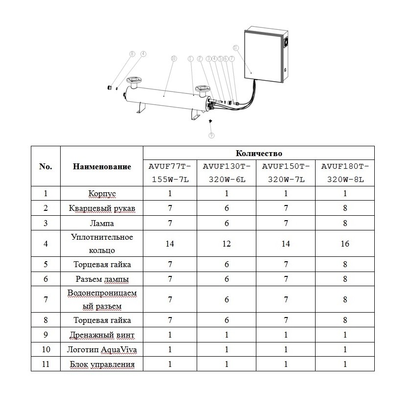 Ультрафиолетовая установка AquaViva AVUF130T, до 170м3, DN150, 2кВт (6шт/320Вт)
