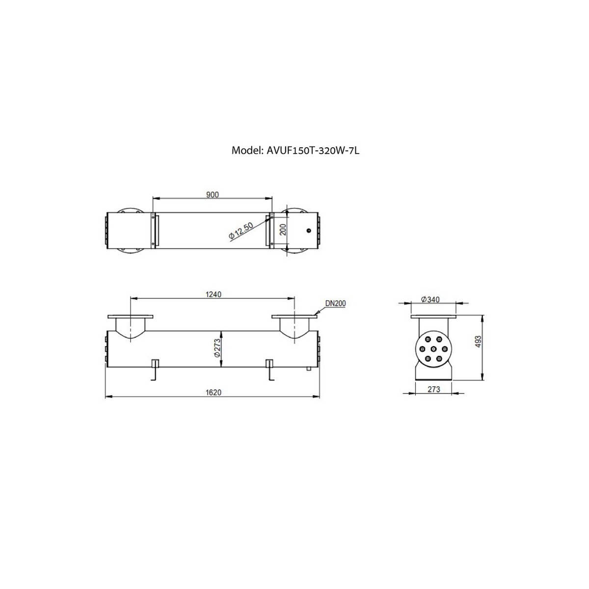 Ультрафиолетовая установка AquaViva AVUF150T, до 220м3, DN200, 2.3кВт (7шт/320Вт)