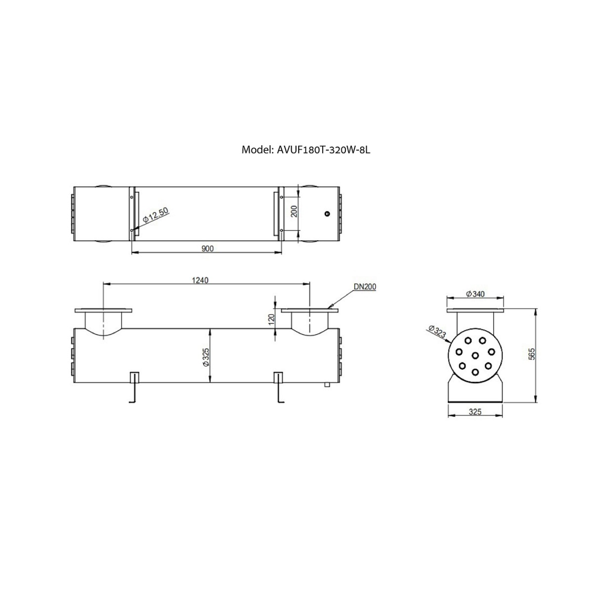 Ультрафиолетовая установка AquaViva AVUF180T, до 250м3, DN200, 2.65кВт (8шт/320Вт)